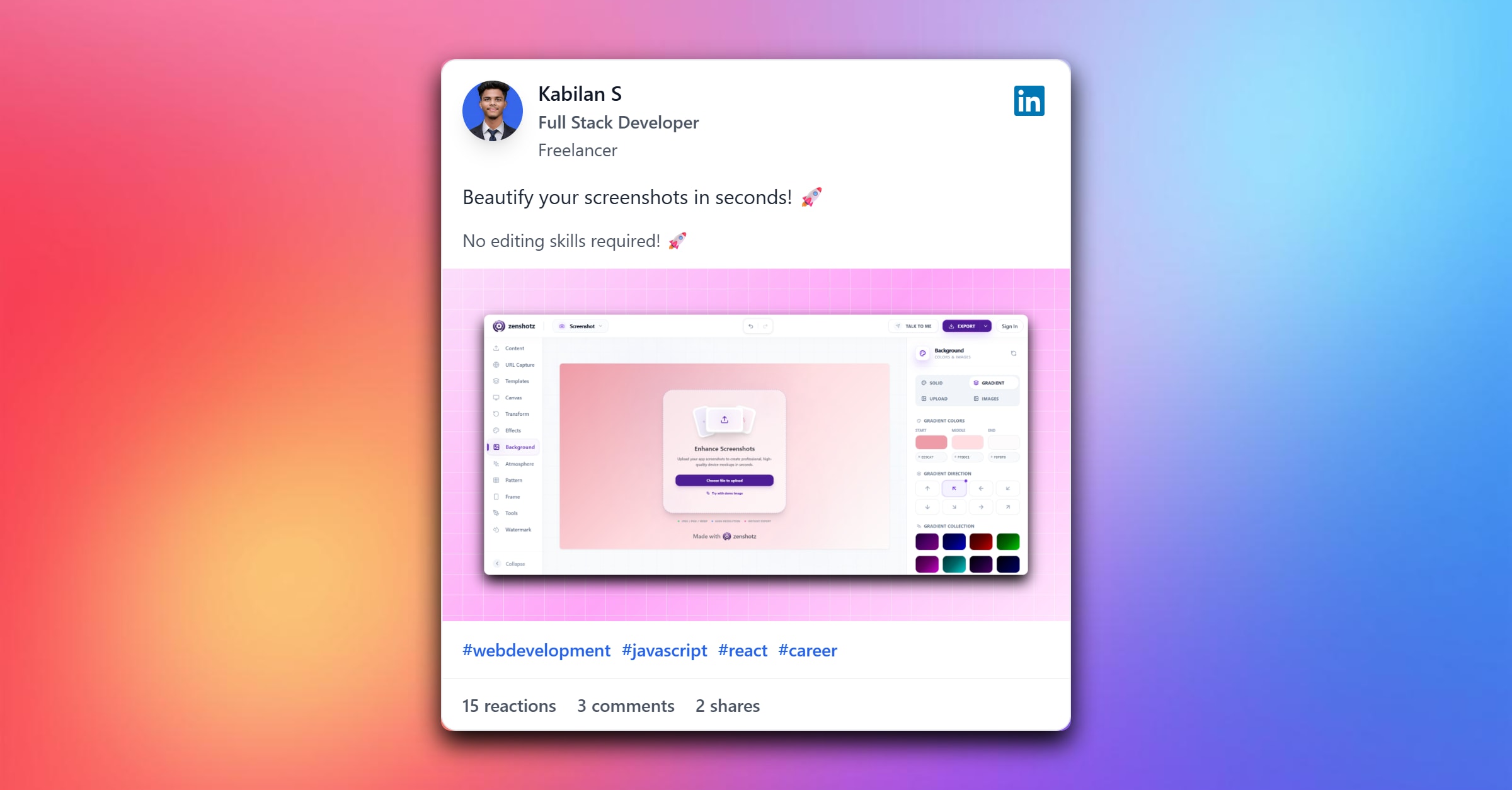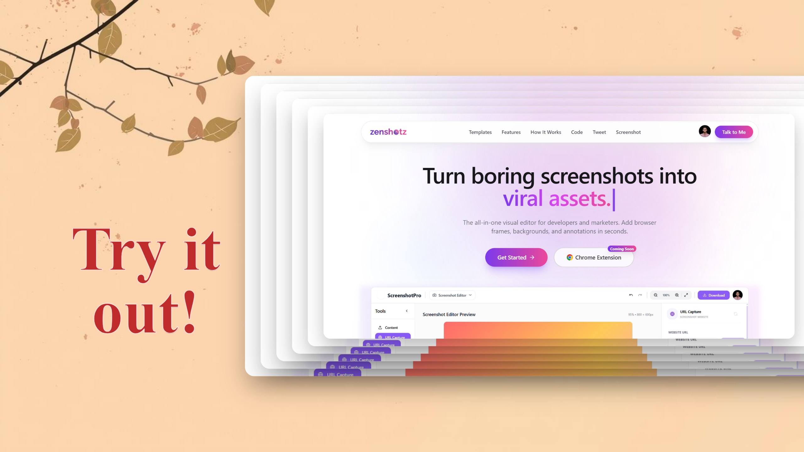 Just shipped zenshotz Beta 🚀 Transform your screenshots into stunning visuals!
